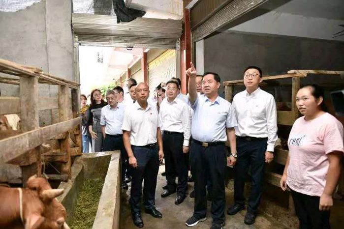 在高峰村脫貧致富帶頭人趙雪紅家里,陳肇雄走進牛棚認真查看養(yǎng)殖情況,親切詢問飼養(yǎng)數量、年收入情況。趙雪紅家曾經因為一次突發(fā)的特大山洪,失去了親人,也幾乎喪失了對生活的信心。在中國電科家庭式母牛散養(yǎng)項目啟動后,她主動報名參與,并按照散養(yǎng)要求,全身心的做好科學飼養(yǎng)。2019年,趙雪紅賣了5頭半大牛犢,換來了近5萬元的收入,家里還有8頭牛在欄,價值近20萬元。陳肇雄對趙雪紅自立自強的精神表示贊賞,對其家庭的扶貧變化感到高興,叮囑她要發(fā)揮好致富帶頭人作用,帶動更多鄉(xiāng)親脫貧致富。