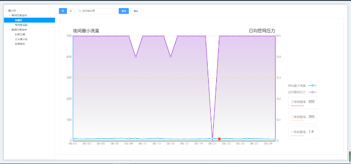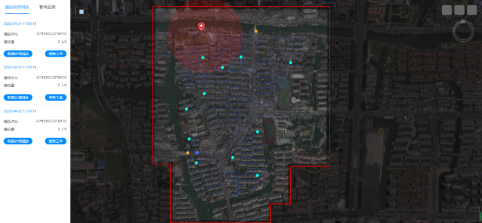 智慧水務(wù)云平臺可以通過先進的漏損定位算法和DMA的夜間最小流量,能夠及時發(fā)現(xiàn)漏損并精準提供漏損位置信息,自動判斷、分析各DMA是否泄漏以及當前泄漏水平,為制定檢漏方案提供依據(jù)。在出現(xiàn)停斷水或爆管等突發(fā)事件時,通過智慧水務(wù)云平臺的漏損定位,幫助實現(xiàn)排查縮小范圍,減輕一線工作人員排查難度,減少居民停斷水時間。
