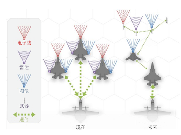 2014年,DARPA提出“分布式戰場管理”(DBM)項目。項目背景是未來的對抗性空域,協同作戰的飛機可能需要限制通信以免被對手發現,或者會被對方干擾而無法交換信息,這將嚴重影響有人/無人編隊作戰能力,為此,DBM項目的目標是使作戰編隊即使在受到干擾的情況下也能繼續執行任務。