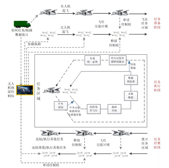 有人/無人機協同作戰典型作戰流程如圖10所示,共分成任務準備階段、任務執行階段和任務結束階段。